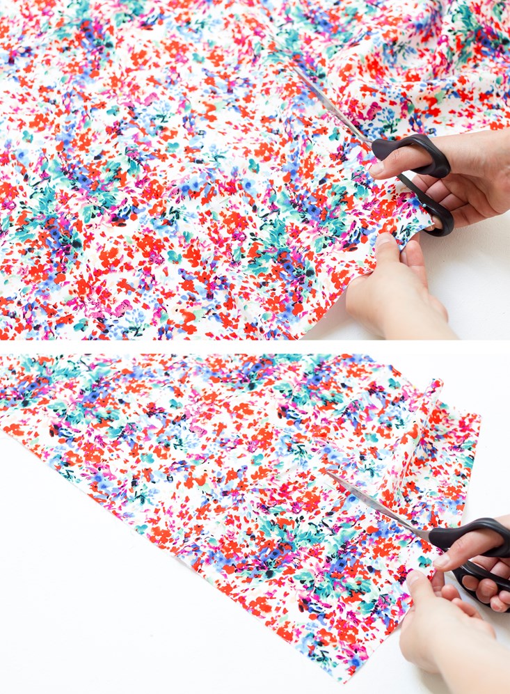 Knip ook een lapje van 9 x 10 centimeter. Dit gebruik je straks om het elastiek netjes weg te werken.