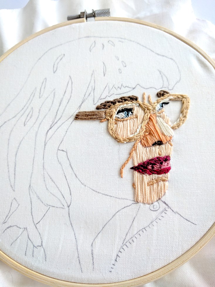 Er zijn veel kunstenaars die de oude borduurtechniek nieuw, hip leven in blazen. Bijvoorbeeld Sarah K. Benning, wiens borduurwerkjes bij iedere shopupdate binnen een paar seconden zijn uitverkocht. Hashtag lifegoals. Mijn borduurwerkjes gaan nog niet zo rap, maar ik merk dat er zeker vraag naar is via Etsy. Daarom kun je zelfs je portret laten borduren, ik laat je zien hoe ik dat doe.