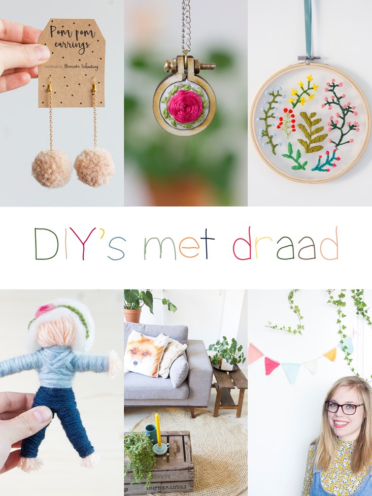 Het leuke aan DIY's met draad is dat ze heel makkelijk zijn om mee te beginnen, je hebt waarschijnlijk wel een bolletje wol ergens in een kastje liggen. Zo niet, bij iedere knutsel- of wolwinkel, maar ook bij HEMA, Wibra en Zeeman is garen te koop. En dat voor een klein prijsje. Bovendien geven projecten met draad meteen veel sfeer door de textuur van het garen. Nog een voordeel: je hoeft niet te wachten tot de lijm droog is: mijn nummer 1 ergernis bij sommige crafts, haha!