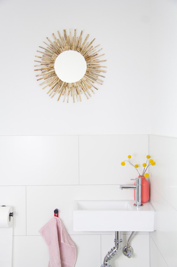 Ik voel me super rijk als ik iets dat te koop is in de winkel, ook zelf kan maken. Meestal wordt het niet zoals in de winkel, maar ja, was dat dan de bedoeling? Dat is exact wat er met dit spiegeltje is: in alle woonwinkels zijn rotan spiegeltjes te koop en I love it! Maar ik vond het ook een super toffe uitdaging om het zelf te gaan maken en zie hier het resultaat. Wat ben ik er blij mee! Wil je hem ook maken? (Ja! Ja! Ja!) Dan is hier de DIY!